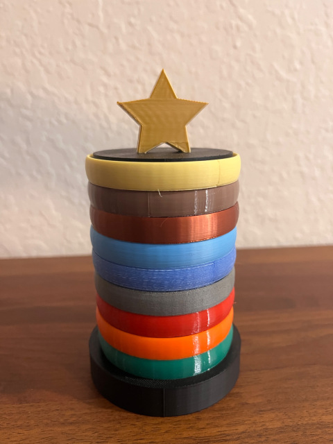9 colored rings (colors may vary).
