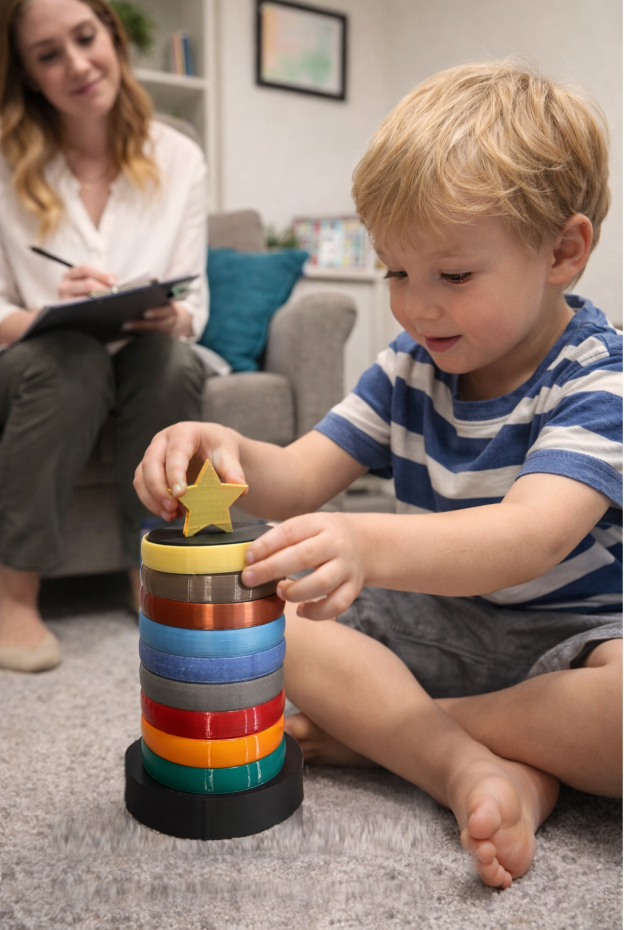 This versatile tool goes beyond conversation. Motus Auctus can be used to visually track emotions shared during sessions, monitor progress over time, reinforce positive behaviors such as completed chores, and even serve as a structured session timer by adding a ring at set intervals, such as every five minutes.